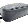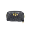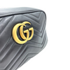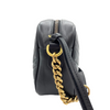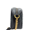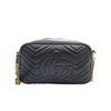 The Marmont Crossbody bag features a quilted leather body, a gold toned chain strap, and a top zip closure.