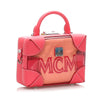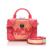 This fun and colorful MCM Vinyl Satchel Red features a vinyl body with leather trim, flat handle and strap, and a top flip lock closure.
