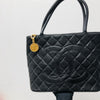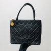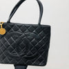 Vintage Chanel Medallion tote in Black Caviar Leather and Gold Hardware.