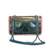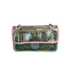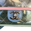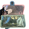 This medium Chanel Coco Splash multi-coloured flap wit’s silver hardware ano blue, green, and pink lambskin leather trim is a super rare and highly sought-after fashion piece. Derived from the 2018 Spring/Summer Collection, it features a signature CC turn-lock closure and a PVC with lambskin trimmed back pocket.