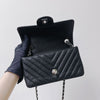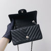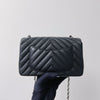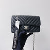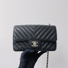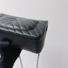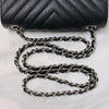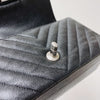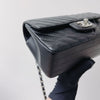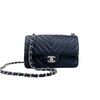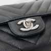 Treat yourself to this luxurious Chanel Mini Flap Bag Chevron Caviar Black. Made from exquisite Chevron quilted Caviar leather, this bag is truly a gorgeous classic by Chanel. The leather construction is beautiful, making it a versatile bag and easy to fall in love with. This bag comes with a strap which features interwoven silver tone chain link.. The interior offers one compartment for all your essentials, as well as one a slip pocket.