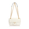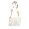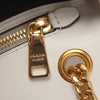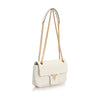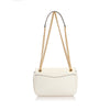 This Prada crossbody bag features a saffiano body, an exterior back slip pocket, a curb chain strap, a top flap with magnetic button closure, and interior zip and slip pockets. Its pristine white color makes it a fresh addition to your wardrobe.