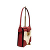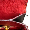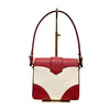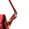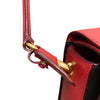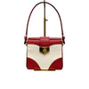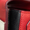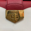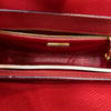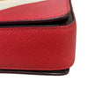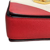 This is an authentic Prada Turnlock Shoulder Saffiano in Red and White. This stylish cross-body bag is made of saffiano leather. The bag includes a detachable leather cross-body strap with gold clasps. The front flap opens with a gold turn lock, revealing a red leather interior with a zippered pocket.