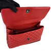 This Chanel Red Quilted Medium Coco Handle Flap bag is a unique and elegant piece. It features a Caviar leather exterior, and a leather top handle.  This beauty can be worn as a top handle, a crossbody, or a shoulder bag.