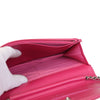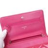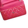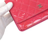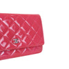 This Chanel Patent Pink Wallet on Chain features a flap enclosure to maximize space and increase security for your items. Adorned with iconic Quilted leather, this WOC is a nod to Chanel's classic chic style. Snatch up this rare find for a fraction of retail price!