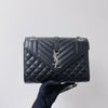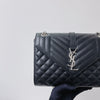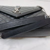 French fashion house Saint Laurent excels at creating lust-worthy accessories infused with the label’s indisputable Parisian elegance. Expertly crafted in Italy from forest green calf leather, this Envelope shoulder bag features a foldover top with magnetic closure, an adjustable shoulder strap, a diamond quilted finish, a silver-tone logo plaque and an internal slip pocket.