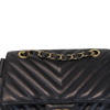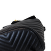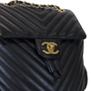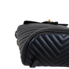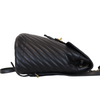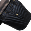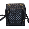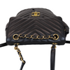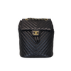 This super chic Chanel backpack is beautifully crafted with black chevron quilted leather and an iconic CC turnlock closure in gold-tone hardware. Keeping your convenience in mind, this bag features an exterior open back pocket for easy access to your phone, cash or cards.