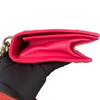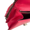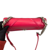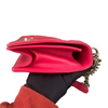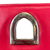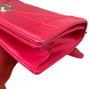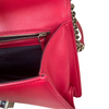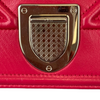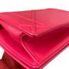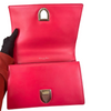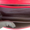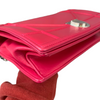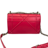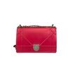 This Dior Small Diorama is crafted of red leather. It has a shoulder strap of silver chain link with a leather shoulder pad. The flap is embossed with linear outlines that run across the bag’s body, giving it a structured style.