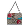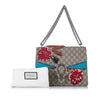This Dionysus features a coated canvas body embroidery details, ruthenium-tone chain straps, a top flap with push lock closure, and an interior zip compartment.