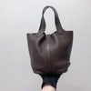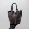 The Hermes Picotin Lock 18 embodies luxury and elegance in its soft, dark brown Clemence calfskin leather. This classy tote features a distinctive one-piece design, secured by leather top handles and a leather strap clasp with a silver palladium padlock hardware. The interior is crafted with suede and is spacious enough to put all your daily essentials and more.