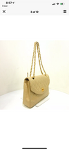 This item carries a B condition rating. It is in gold vintage condition. The lambskin leather shows some hairline scratches throughout. The hardware also show signs of wear. The interior of the pockets show some peeling.