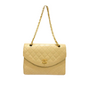 This Chanel Vintage shoulder bag features a leather body, a gold-tone woven chain strap, a front flap with a twist CC closure, and interior slip pockets.