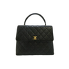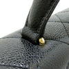 The Chanel Vintage Kelly in Black Caviar Leather with 24k GHW crafted of diamond quilted luxurious caviar leather. The bag features a sturdy leather top handle with gold links, a rear patch pocket, and a gold Chanel CC turn-lock for the facing flap.