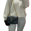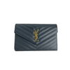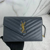 This YSL wallet on chain is made from quilted calfskin leather with a signature Grain de Poudre texture embossed throughout. With its detachable curb chain gold-toned shoulder strap, it can easily transition from a crossbody/shoulder bag or a super chic clutch. The interior has a leather lining with a zipper compartment and multiple card slots to keep you organized. Complete your OOTD's with this classy wallet on chain from Saint Laurent!