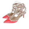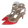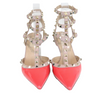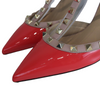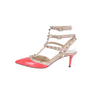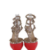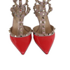 This is an authentic Valentino Rockstud Ankle Strap 85mm in calf leather detailed with golden geometric studs, pointed toe, adjustable ankle straps, and stiletto heel.