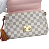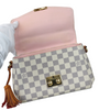 The Louis Vuitton Croisette in Damier Azure canvas and leather is perfect for our trendsetters that love versatility in a bag. With its detachable strap, you can wear it as a handbag or shoulder bag, and with its smaller size, you can also sport it as a crossbody. Its oversized padlock is an edgy touch to a stylish bag. Get this bag today!