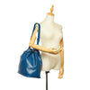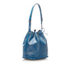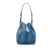 The Louis Vuitton Petit Noe features an epi leather body, an adjustable shoulder strap, and a drawstring closure.