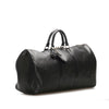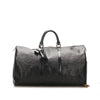 The Louis Vuitton Keepall 50 features an epi leather body, rolled leather handles, and a top zip closure.