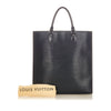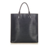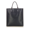 Louis Vuitton Epi Sac Plat PM Black. The Sac Plat PM features an epi leather body, rolled leather handles, an open top, and interior slip pockets.