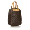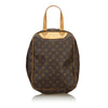 The Louis Vuitton?ÿExcursion features a monogram canvas body with vachetta leather trim, flat vachetta handles, a zip around closure, and an interior slip pocket.