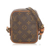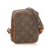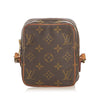 Louis Vuitton Monogram Mini Danube Brown. The Mini Danube features a monogram canvas body, a flat shoulder strap, and a top zip closure.