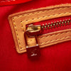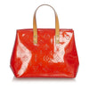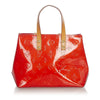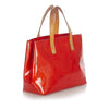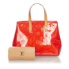 Louis Vuitton Vernis Reade PM Red. The Reade PM features a vernis leather body, flat handles, an open top, and an interior zip pocket.