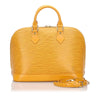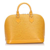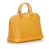 This is a stunning Louis Vuitton bag that is crafted of Louis Vuitton signature textured epi leather in yellow. The bag features cowhide rolled leather top handles and trim with polished silver hardware including handle rings and a double zipper that is made to last. The interior is a yellow microfiber with patch pockets. This is an ideal bag for personal or professional use and will allow you to tote your things in a sophisticated and stylish case.