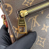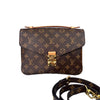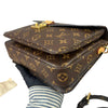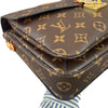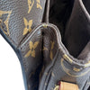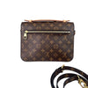 This Louis Vuitton Monogram Pochette Métis a features Monogram print, an optional adjustable canvas shoulder strap, a V-shaped front flap with buckle closure, and a polished brass S-lock.
