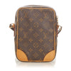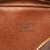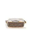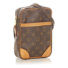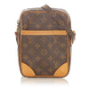 This Louis Vuitton Danube features a monogram canvas body, an adjustable shoulder strap with leather details, an exterior front slip pocket, and a top zip closure.