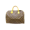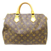 This Louis Vuitton Speedy 30 features Monogram canvas, vachetta handles and trim, a top zip closure, and an interior pocket.