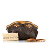 This Louis Vuitton Tivoli GM features a monogram canvas body, rolled leather straps, a top zip closure, and interior slip pockets.