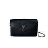The Louis Vuitton Mylockme Chain Pochette bag features a solid black color, a chain strap, and a top flap with a turn lock closure. Be stylish and fabulous with this Louis Vuitton bag.
