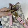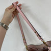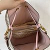 The bag is in 8.8/10 condition. Signs of wear can be seen on the pink cowhide leather as well as on the interior.