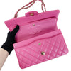 This Chanel Classic Medium Double Flap bag is crafted in diamond-quilted Caviar black leather featuring a Gold Toned CC turn-lock and leather woven strap. This sought after beauty won't last long so don't miss your chance to own her.