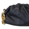 Check out the Bottega Veneta Small Chain Black Pouch featuring Gold Hardware. This exquisite accessory exudes sophistication and versatility, perfect for any occasion. The sleek black design adding a touch of artisanal beauty. The detachable chain strap offers various styling options, from a chic clutch to a shoulder bag. With its compact size, it accommodates your essentials with ease.