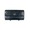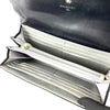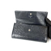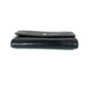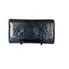 This Chanel Wallet features an embossed leather body, aa top flap with snap closure, and interior zip and card pockets.
