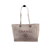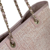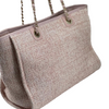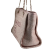 This fun and the fabulous bag makes the perfect everyday or travel tote! The Chanel Canvas Deauville Medium Shopping Tote Bag features a durable canvas body with the traditional Chanel logo stitched in baby pink on the front. The bag comes with chain and fabric entwined shoulder straps. This comfortable and lightweight jumbo tote will hold all your daily essentials in style.