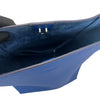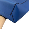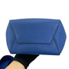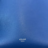 This is an authentic Celine Sangle Bucket Small Soft Grained Calfskin in Blue. This stylish blue shoulder bag, made of smooth calfskin leather, includes a fabric strap with silver clasps for a sophisticated look. The top opens to a matching interior that has a patch and zipper pocket.