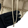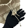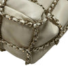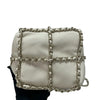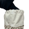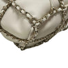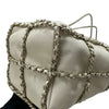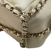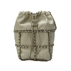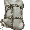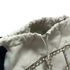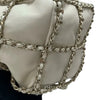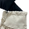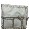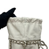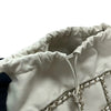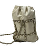 This is an authentic Chanel Chain Bucket Drawstring Lambskin in White. This stylish handbag is crafted of smooth lambskin leather, with a leather-threaded brushed gold chain cage. The bag features a matching leather-threaded chain crossbody strap and a CC logo cinch-cord pull at the top. This opens to a compact fabric interior with a small pocket.