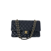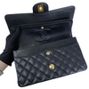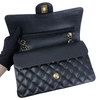This Chanel Classic Medium Double Flap bag is crafted in diamond-quilted black caviar leather featuring a CC turn-lock and chain in gold hardware. The interior features the signature double flap as well as two front pockets and a large main compartment to ensure all of your essentials stay neat and tidy. This sought after beauty won't last long so don't miss your chance to own her.