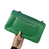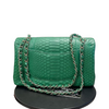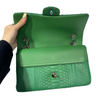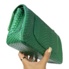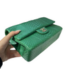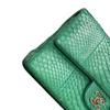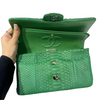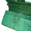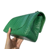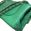 Treat yourself to this luxurious and rare Chanel Classic Flap bag with an exotic twist. Made from exquisite Python leather, this bag is truly a gorgeous masterpiece by Chanel. The it's gorgeous green color makes this a unique bag that can easily turn into a statement piece with any outfit.