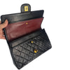 This is an authentic Chanel Double Flap Medium Lambskin Quilted vintage classic flap bag in Black. This classic shoulder bag is crafted of diamond quilted lambskin leather. This bag includes a flat pocket at the back, a polished gold chain strap threaded through leather, and a matching gold-plated CC turn lock on the front. Inside, it reveals a burgundy leather interior with flap and patch pockets.