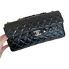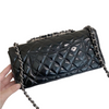 This stunning Chanel East West flap in Quilted Patent Leather with SHW resembles Chanel’s classic flap bags. Featuring an interlaced leather and silver chain-link strap, which can be worn crossbody or doubled up, a silver CC lock, and a smile pocket on the back. The perfect patent leather in black is a perfect match to any outfit, and can easily be worn on any occasion. Don’t miss your chance to own this timeless beauty from Chanel!