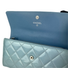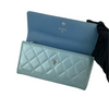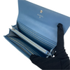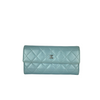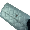 If you're looking for something luxurious and elegant for your cash, cards and ID's, look no further! This Chanel Wallet comes in a patent leather body in a beautiful iridescent blue/green shade with multiple card slots and a snap button closure to ensure your valuables are safe and secure. Add this beauty to your closet today!