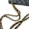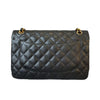 This Chanel Classic Flap is as Iconic as a bag can get. It features the durable black diamond-quilted Caviar Leather adorned with gold hardware. It also features the leather and gold chain link shoulder strap which can be worn long or short. The interior is the perfect size to fit all of your daily needs and essentials with one large compartment and two smaller pockets in the front.