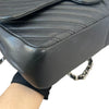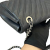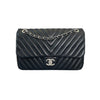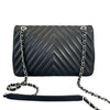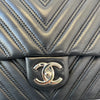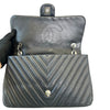 Single Flap Double Stitch Lambskin Chevron Black SHW