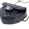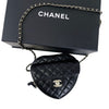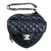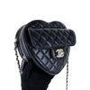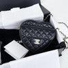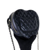 The Large Chanel Heart Bag is made from diamond quilted white lambskin with a woven chain leather strap. The body is heart-shaped and irresistible. The front features a single flap with an exterior smile pocket at the back. The top comes with a double zip, but one zip is accentuated with a golden heart-shaped charm.