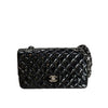 This gorgeous Chanel Medium Flap in black patent leather is a classic piece that doubles as a statement accessory for an OOTD! It features sleek, shiny patent leather and bright silvertone CC turn-lock closure. Wear it with jeans or an evening dress, and look fabulous without even trying.
