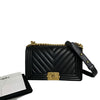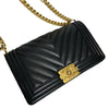Medium Le Boy Chevron Quilted Calfskin Black GHW
