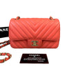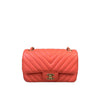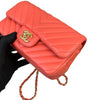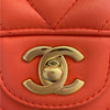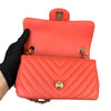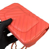 This stunning Chanel Classic Mini Flap in Red Chevron Calfskin leather with gold hardware is a must-have for any Chanel collector. It features a woven chain strap, which can be worn as a crossbody or doubled up to wear as a shoulder bag, and Chanel’s signature smile pocket on the back. This is the perfect bag to add a touch of fierce femininity to your outfits.